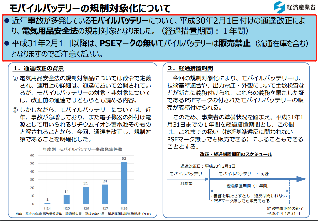2019年2月1日之后禁止使用沒有PSE標(biāo)志的移動電源(包括配送庫存)