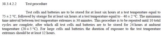 在舊版中,高溫儲(chǔ)存溫度值為72±2℃,而新版標(biāo)準(zhǔn)則要求為75±2℃。從此點(diǎn)不難看出,新版標(biāo)準(zhǔn)對(duì)battery及cell對(duì)高溫的耐受性提出了更高要求。表面上看,變化不是太大,實(shí)則不然,75℃對(duì)很多電子元器件而言是一個(gè)門(mén)檻,對(duì)產(chǎn)品能否通過(guò)測(cè)試有著至關(guān)重要的影響。