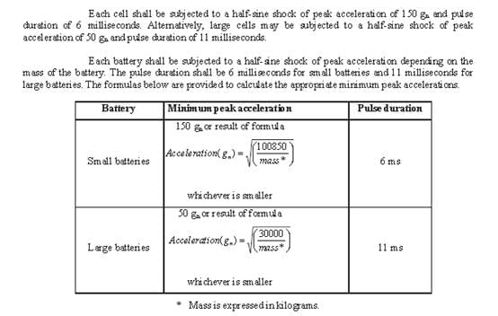 在舊版中,加速度峰值是固定值:小電池150gn,大電池50gn。而新標(biāo)準(zhǔn)則是制定了公式,根據(jù)電池的重量來(lái)對(duì)應(yīng)算出加速度并相對(duì)應(yīng)的與150gn和50gn做對(duì)比后采用相應(yīng)的加速度峰值。