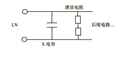 在一般開關(guān)電源電路中, L-N 之間通常會設(shè)計(jì)放置一個 X 電容,此電容的作用一般都是為了抑制電磁干擾。然而,從安全的角度出發(fā),在電路工作時,該電容會儲存電荷,而當(dāng)電源插頭從插座中拔出時,如果人體觸摸到插頭,該電容則會通過人體放電,有可能產(chǎn)生觸電危險(xiǎn)。因此,IEC60065-2014 標(biāo)準(zhǔn)中,第 9.1.6 章專門對電路的拔出電源插頭放電情況進(jìn)行了測試。