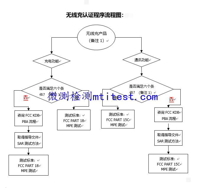 針對FCC關(guān)于無線充的認證方法,單從標準去研究判斷,確實不是十分的直觀,為了方便廣大客戶朋友們迅速有效地判斷出自己的產(chǎn)品應(yīng)該采用哪種法規(guī)來認證,微測檢測特地制作如下流程圖,供您參考!