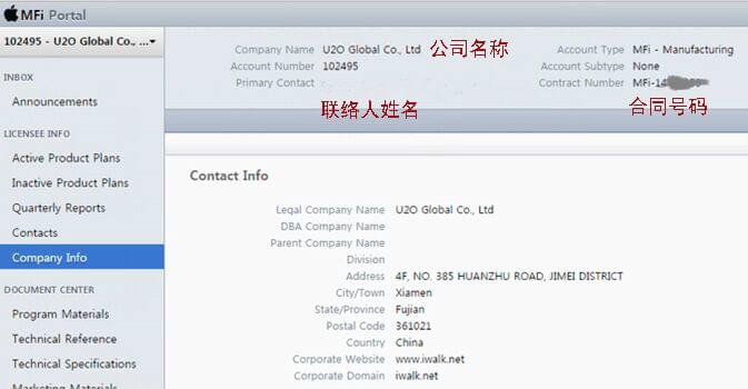 B、根據(jù)MFI的賬號和合同編號,消費者可以通過蘋果官方客服查證其蘋果會員的資質(zhì)。