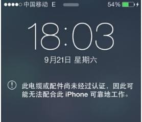蘋果公司為規(guī)范其周邊配件行業(yè),針對ligthing接口提出了相應(yīng)要求。企業(yè)生產(chǎn)的配件如果沒有向蘋果公司購買的電子芯片,在其連接蘋果設(shè)備的時(shí)候就會(huì)產(chǎn)生不兼容的提示,讓其功能無法正常使用。其中最主要的是蘋果公司對IOS7、8系統(tǒng)ligthing的兼容問題的完善。防止山寨數(shù)據(jù)線對IOS設(shè)備的傷害及杜絕不安全充電事故。