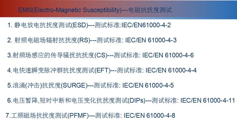 3.電磁抗擾度 EMS (Electro-Magnetic Susceptibility): 指在一個電磁干擾的環(huán)境中,裝置 整組設備或整套系統(tǒng)不會因處于此環(huán)境而減損其功能的能力。