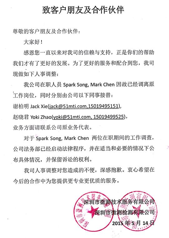 當(dāng)前位置:首頁(yè)11 » 微測(cè)檢測(cè)資訊中心 » 微測(cè)動(dòng)態(tài) » 致客戶朋友及合作伙伴