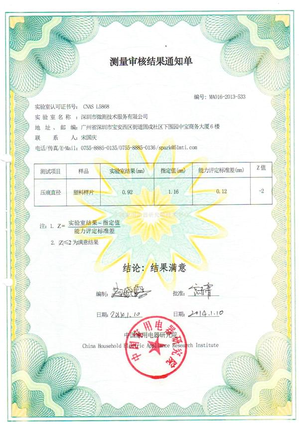 《壓痕直徑》測(cè)量審核結(jié)果通知單