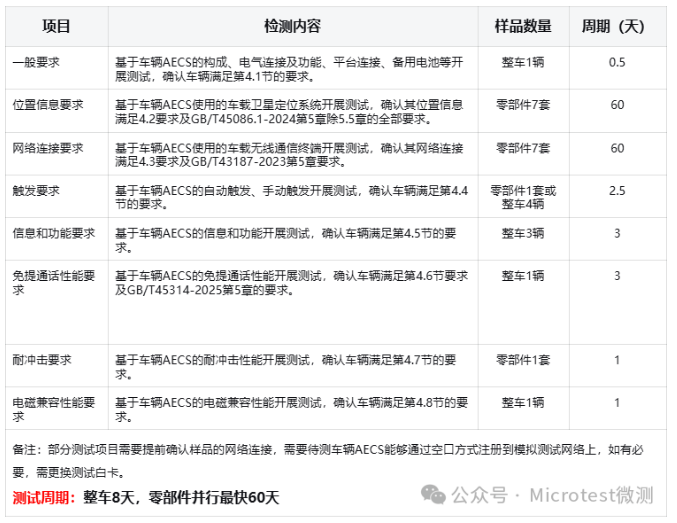 深圳市微測檢測有限公司正在西南地區(qū)建立緊急呼叫檢測中心,最快在2025年第四季度將建成緊急呼叫領(lǐng)域全面的檢測能力,屆時(shí)能為客戶提供零部件到整車的全鏈條緊急呼叫測試服務(wù),具體包括:
